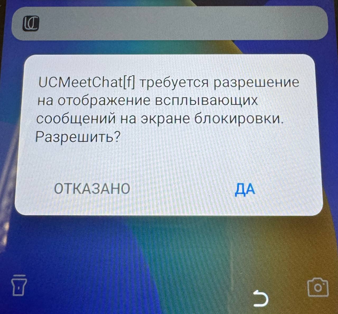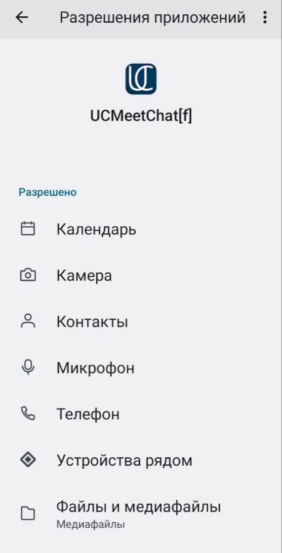Для доступа к функционалу аудио и видео звонков в мессенджере UC.Meet Chat, выдайте все необходимые разрешения в настройках вашего смартфона. При первом звонке обязательно разрешите отображение всплывающих сообщений на экране блокировки: