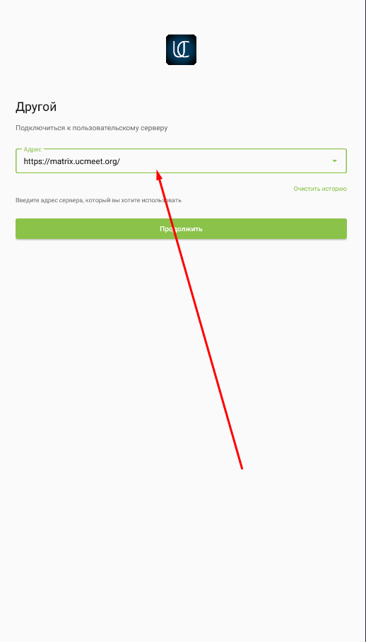 Наберем адрес вашего сервера, например matrix.ucmeet.org: