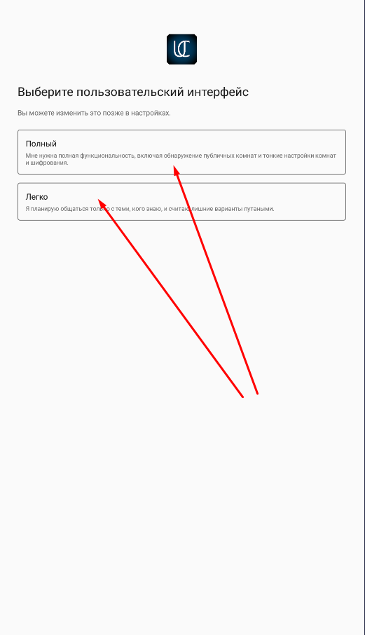 Далее выбираем вариант интерфейса -полный или облегченный (это можно изменить позднее):