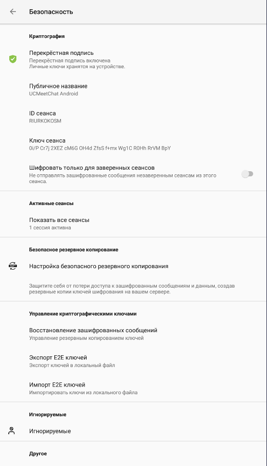 Здесь все о шифровании и безопасности, а также ваши ключи: