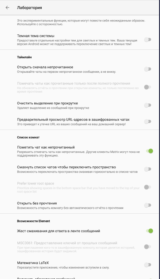 Здесь экспериментальные функции, которые могут повести себя неожиданным образом, используйте с осторожностью: