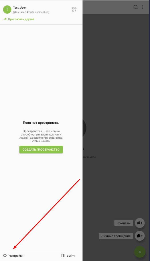 Пока все чисто у вас нет комнат, пространств, личной переписки: