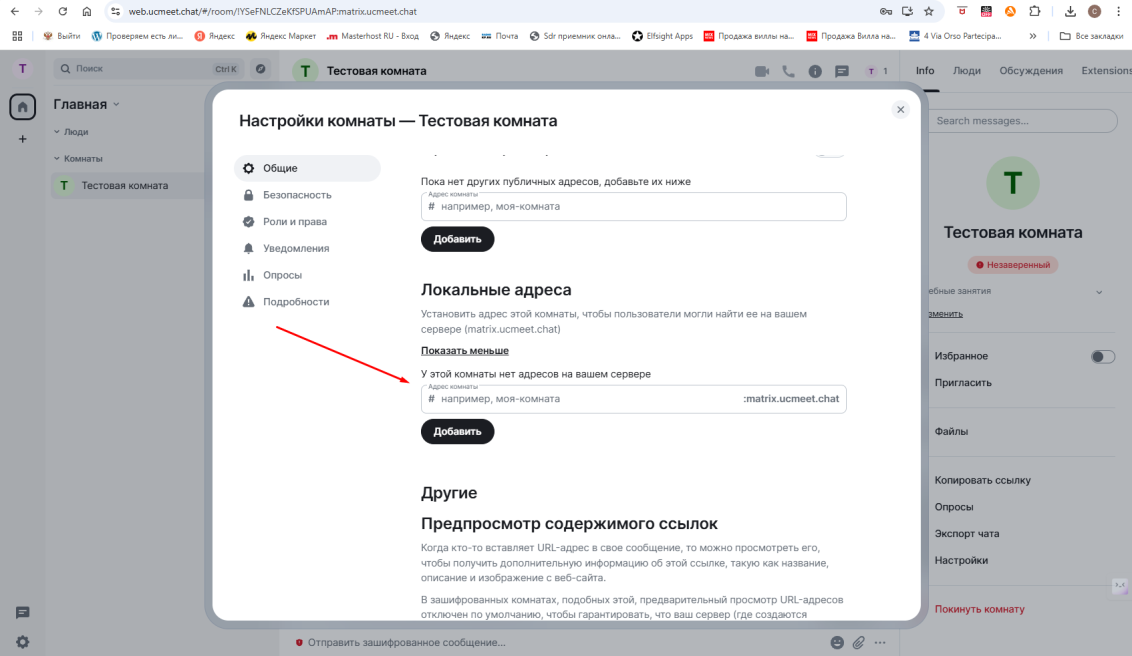 Для более распространенного случая желаемого локального адреса нажмите «Показать больше» в разделе «Локальные адреса» в настройках комнаты на вкладке «Общие»: